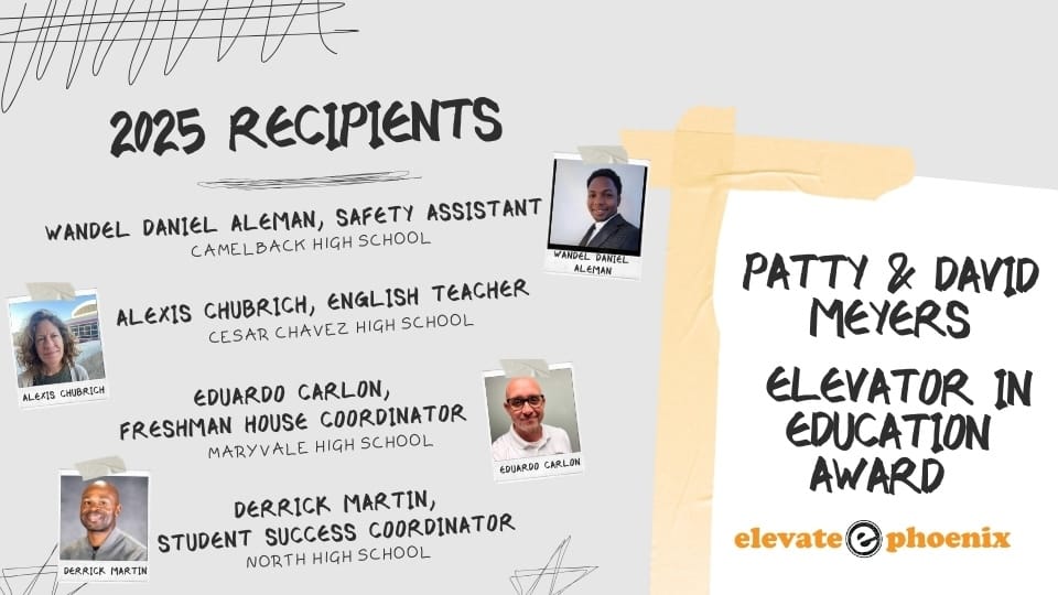 The 8th Annual Ann Meyers Drysdale ELEVATOR IN EDUCATION AWARDS & SCHOLARSHIP LUNCHEON was a powerful reminder of the incredible things that can be achieved when a community comes together to invest in its young people. It was a celebration of past successes and a renewed commitment to empowering the future leaders of Phoenix. The funds raised will not only provide crucial financial assistance but will also fuel the mentorships and educational programs that equip Elevate Phoenix students with the tools they need to reach their full potential. The event served as an inspiring call to action, urging everyone to become a Champion of Change and continue supporting the vital work of Elevate Phoenix in building brighter futures, one student at a time.
